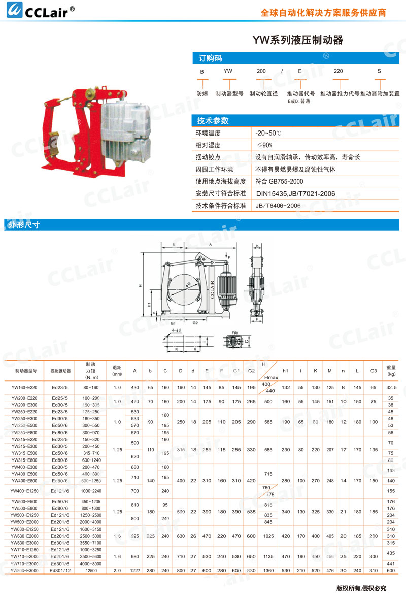 YW710-E1250,YW710-E2000,YW710-E3000,YW800-E3000,CCLair YW400-E1250,