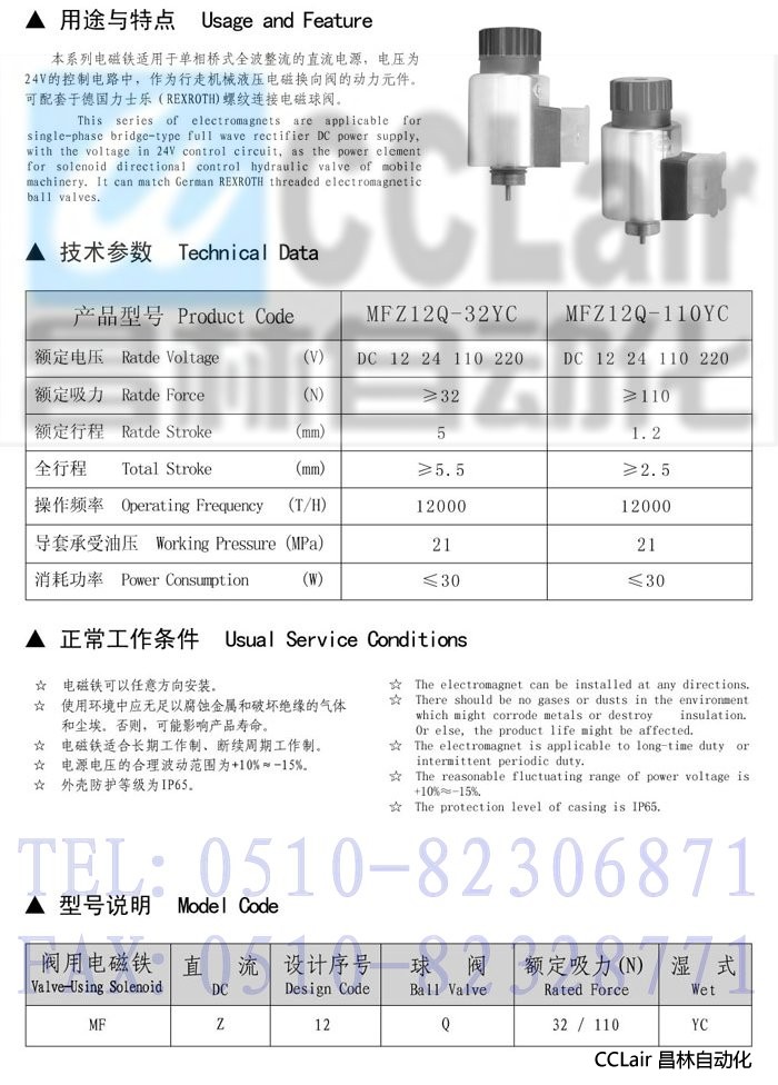» MFZ12Q-32YC,MFZ12Q-110YC,直流濕式閥用電磁鐵
