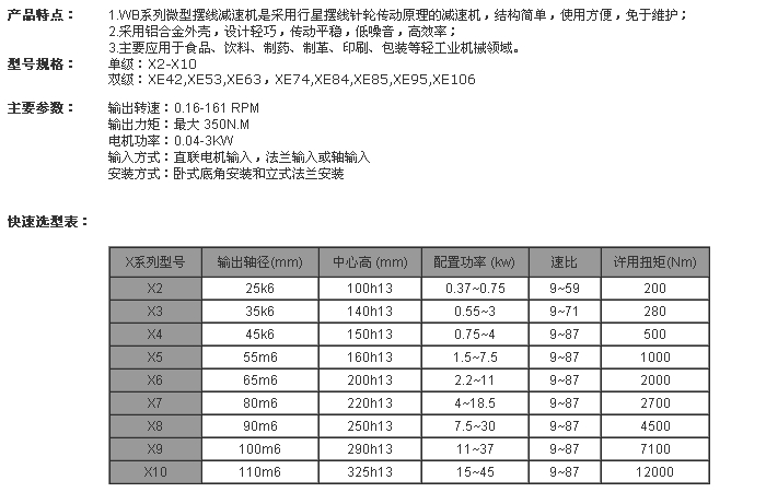 X2,X3,X4,X5,XE42,XE53,XE63,XE74,XE84,XWE42,XWE53,XWE63,XWE74,XLE42,XLE53,擺線減速機(jī)