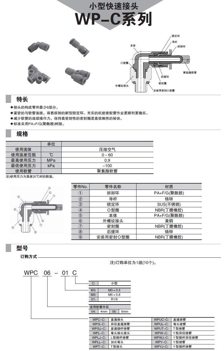 WPC04,WPL04,WPT04,WPLL04,WPUC04C,WPLJ04C,WPUL04C,WPY04C,WPLL06,小型快速接頭