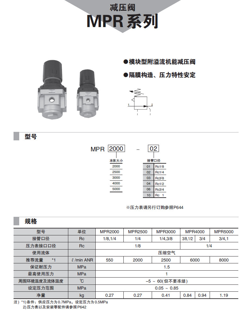 MPR2000-01,MPR2500-02,MPR3000-03,MPR4000-04,MPR5000-06,MPR2000-10,減壓閥