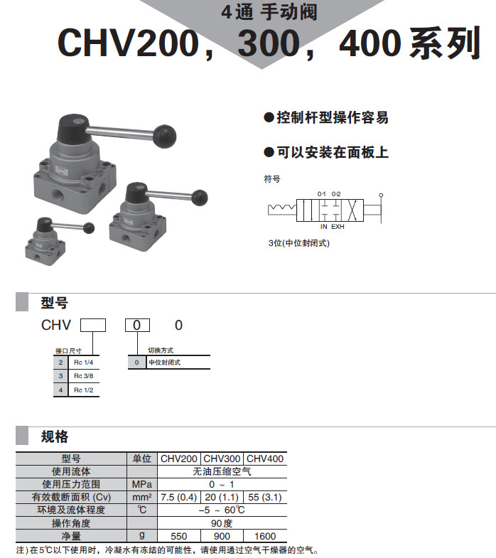 詳細(xì)信息 CHV200,CHV300,CHV400,4通手動(dòng)閥