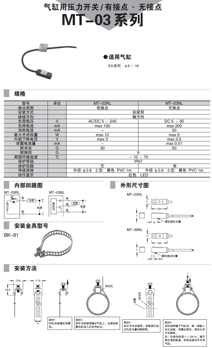 MT-03RL,MT-03NL,氣缸用壓力開關(guān)