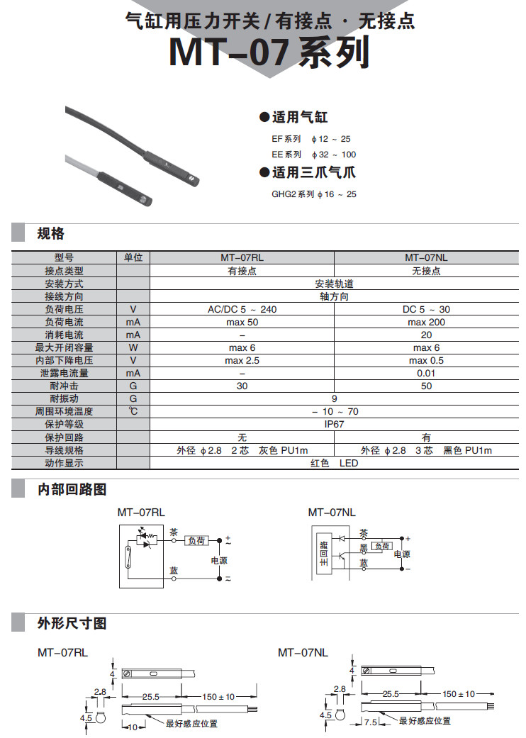 您當(dāng)前的位置:首頁 » 產(chǎn)品&解決方案 » MT-07RL,MT-07NL,氣缸用壓力開關(guān)