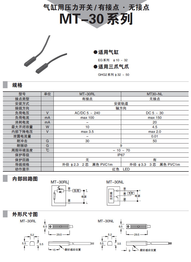 您當(dāng)前的位置:首頁(yè) » 產(chǎn)品&解決方案 » MT-30RL,MT30-NL,氣缸用壓力開關(guān)