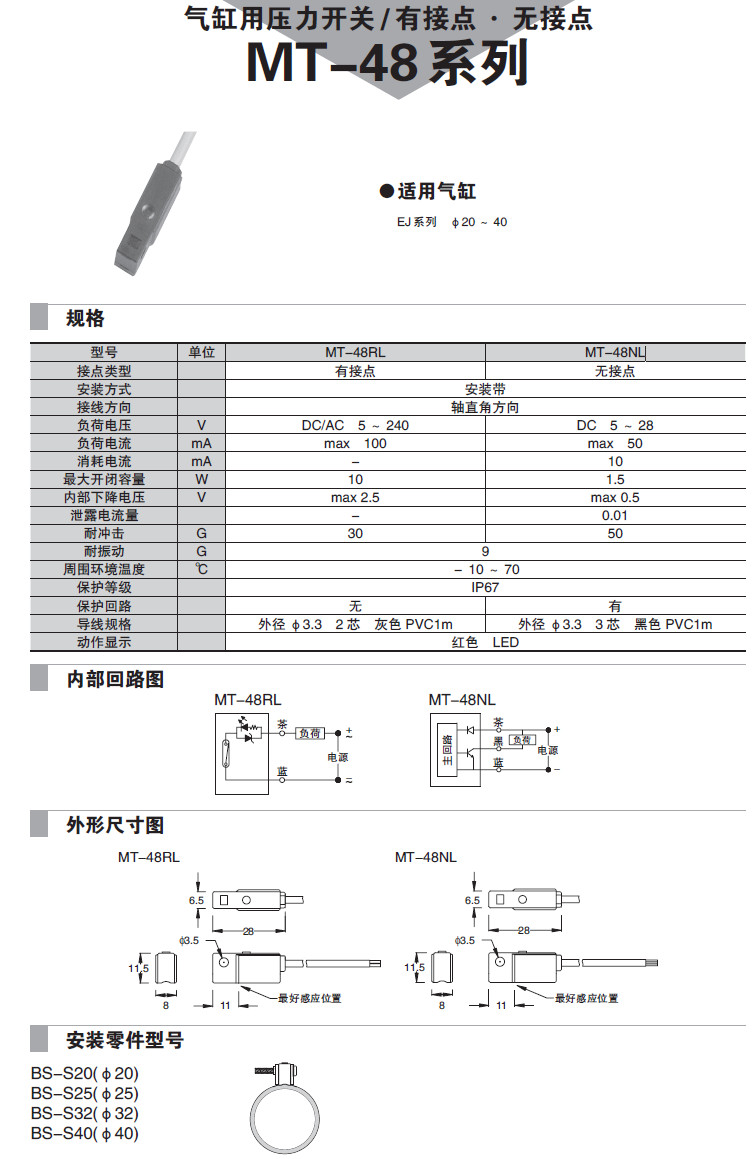 詳細信息 MT-48RL,MT-48NL,氣缸用壓力開關(guān)