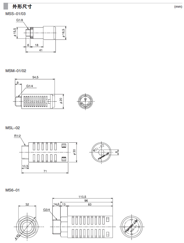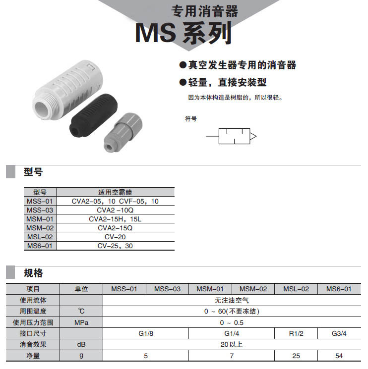 詳細(xì)信息 MSS-01,MSS-03,MSM-01,MSM-02,MSL-02,MS6-01,消音器