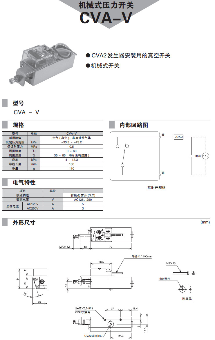 詳細(xì)信息 CVA-V,機(jī)械式壓力開(kāi)關(guān)