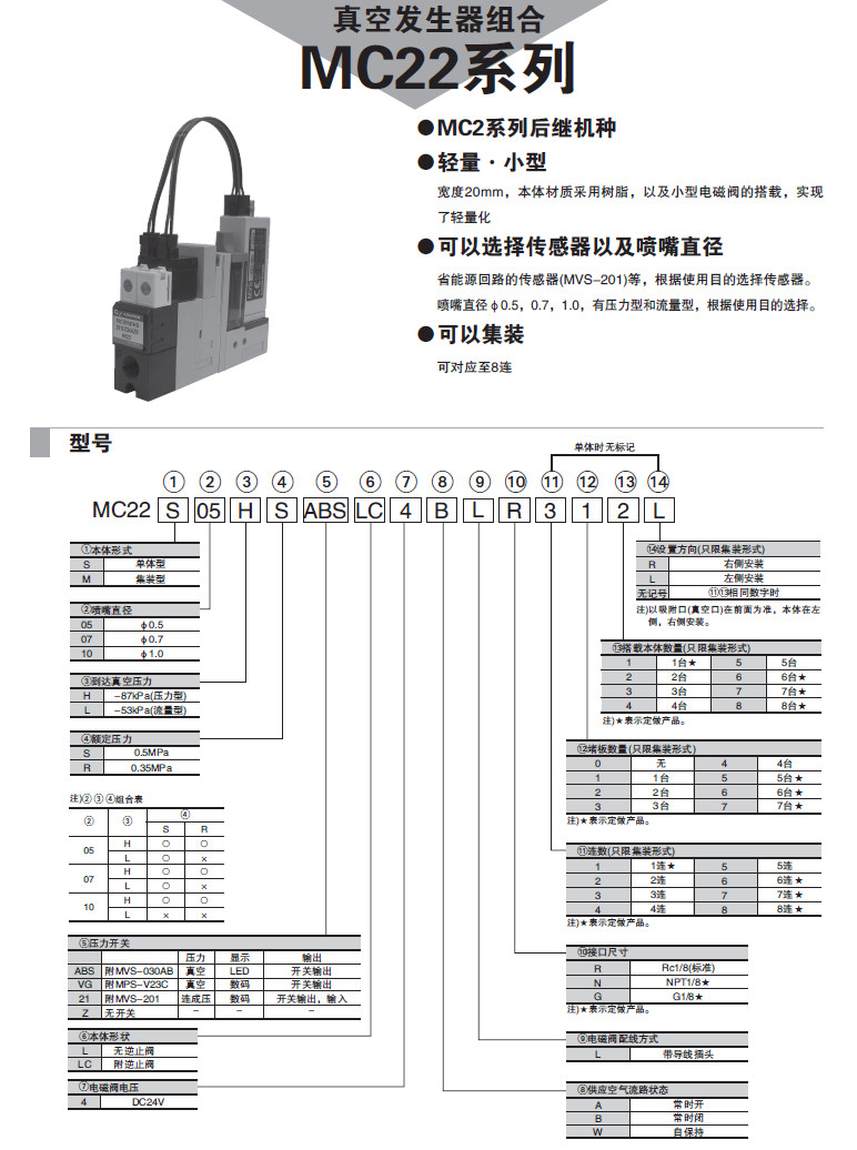 MC22-S-05,MC22-S-07,MC22-S-10,MC22-M-05,MC22-M-07,MC22-M-10,真空發(fā)生器組合