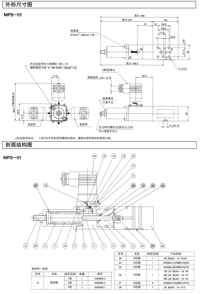 MPS-01P-1A-10,MPS-01B-1A-10,MPS-01P-1A-10,MPS-01P-2A-10,MPS-01B-2A-10,MPS-01P-2A-10,DAIKIN疊加型壓力開關(guān)