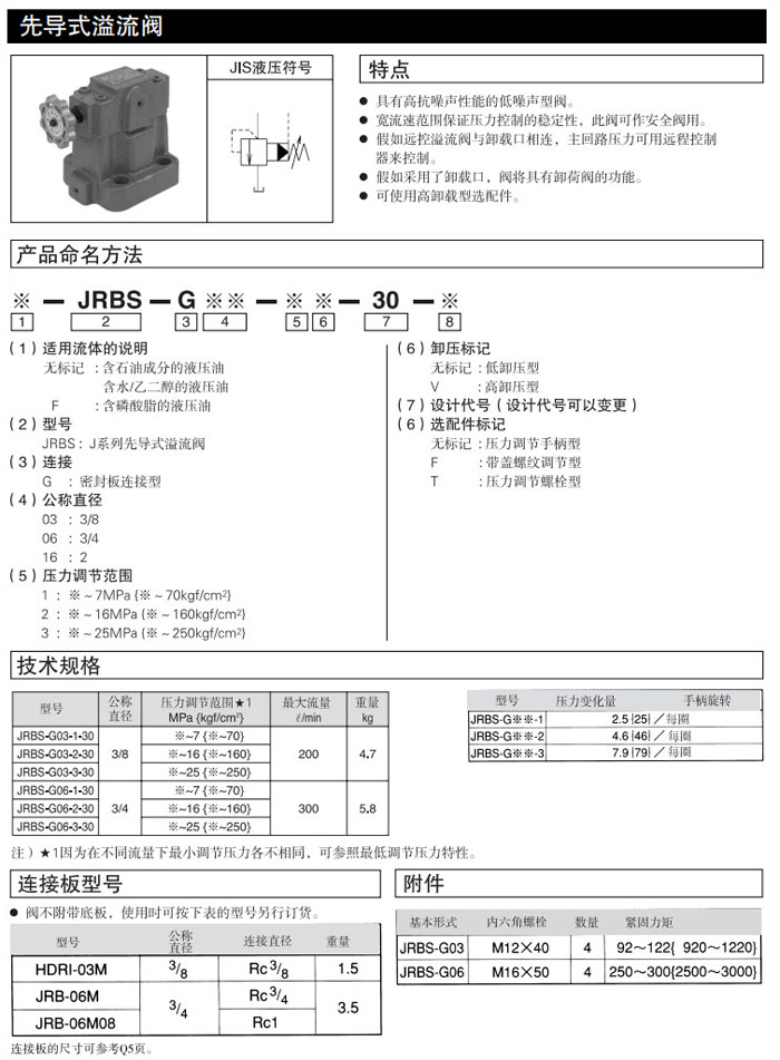 詳細(xì)信息 JRBS-G03,JRBS-G06,JRBS-G16,JRBS-G03-1-30,JRBS-G06-1-30,RBS-G16-1-30,DAIKIN先導(dǎo)式溢流閥
