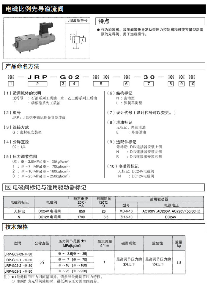 JRP-G02-03-N-30,JRP-G02-1-N-30,JRP-G02-2-L-30,JRP-G02-3-L-30,JRP-G02-2-N-30,DAIKIN電磁比例先導溢流閥