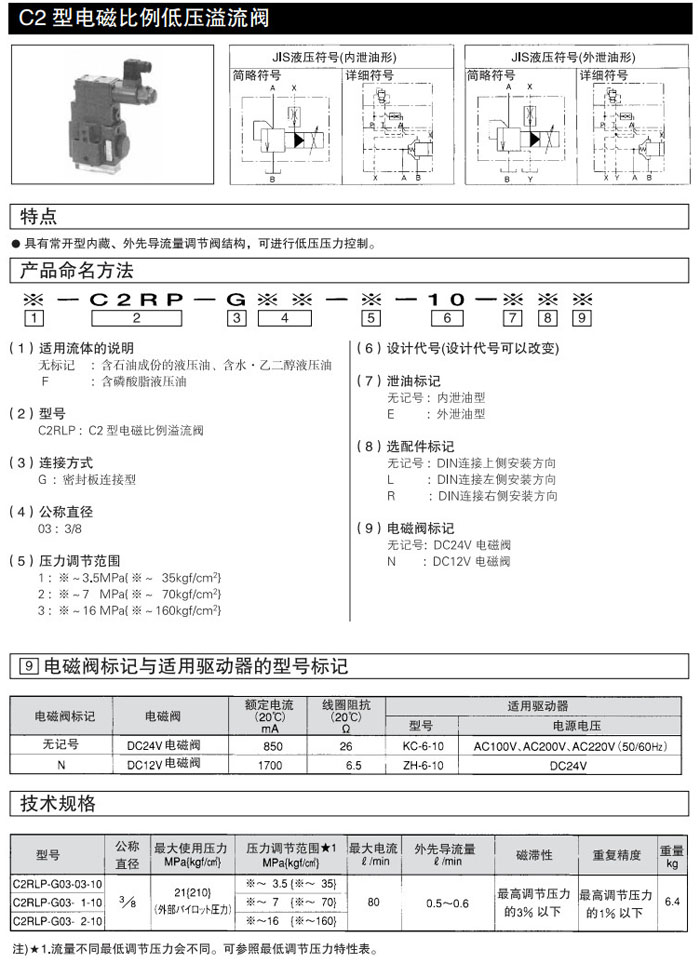 詳細信息 C2RLP-G03-3-10,C2RLP-G03-1-10,C2RLP-G03-2-10,DAIKIN電磁比例低壓溢流閥