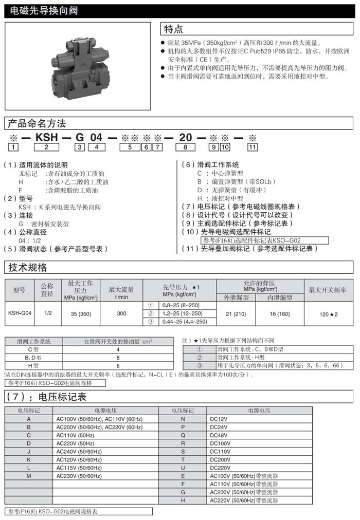 KSH-G04-2C,KSH-G04-3C,KSH-G04-33C,KSH-G04-4C,KSH-G04-44C,KSH-G04-5C,KSH-G04-6C,DAIKIN電磁先導(dǎo)換向閥