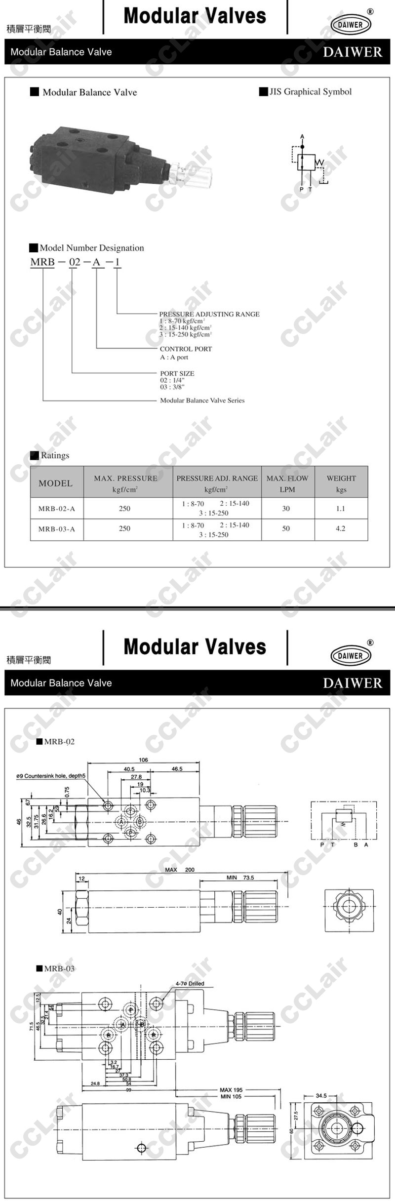 詳細信息 MRB-02-1,MRB-02-2,MRB-02-3,MRB-03-1,MRB-03-2,MRB-03-3,DAIWER積層平衡閥