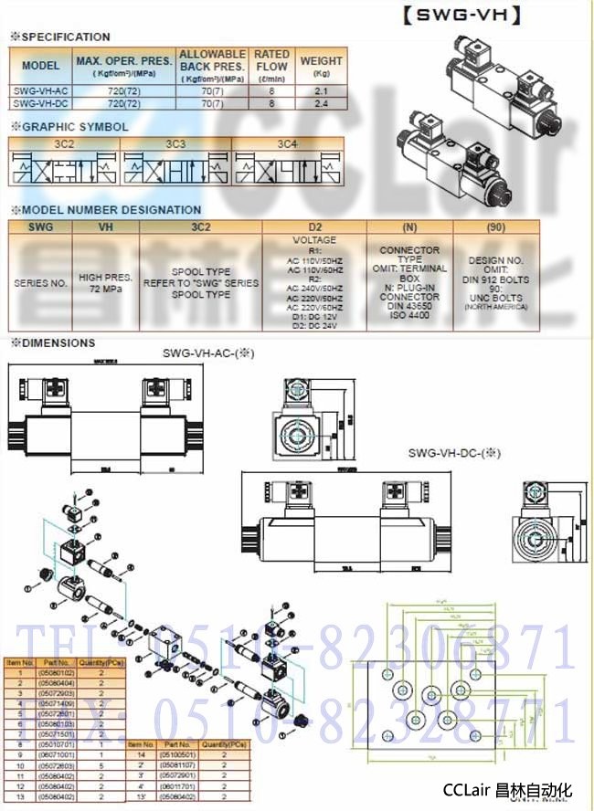 產(chǎn)品: 瀏覽次數(shù):789SWG-VH-AC,SWG-VH-DC,方向控制閥,