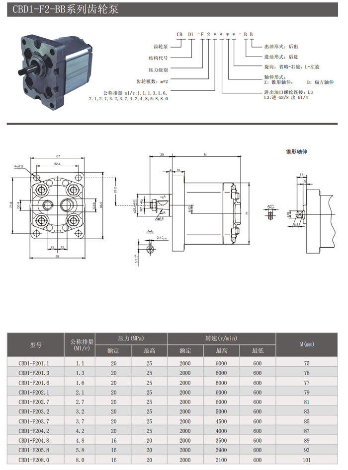 CBD1-F203.2,CBD1-F203.7,CBD1-F204.2,CBD1-F204.8,CBD1-F205.8,CBD1-F208.0,CBD1-F208.0L3Z-BB,齒輪泵