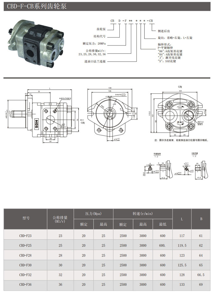 CBD-F23,CBD-F25,CBD-F28,CBD-F30,CBD-F32,CBD-F36,CBD-F23LH6-CB,齒輪泵