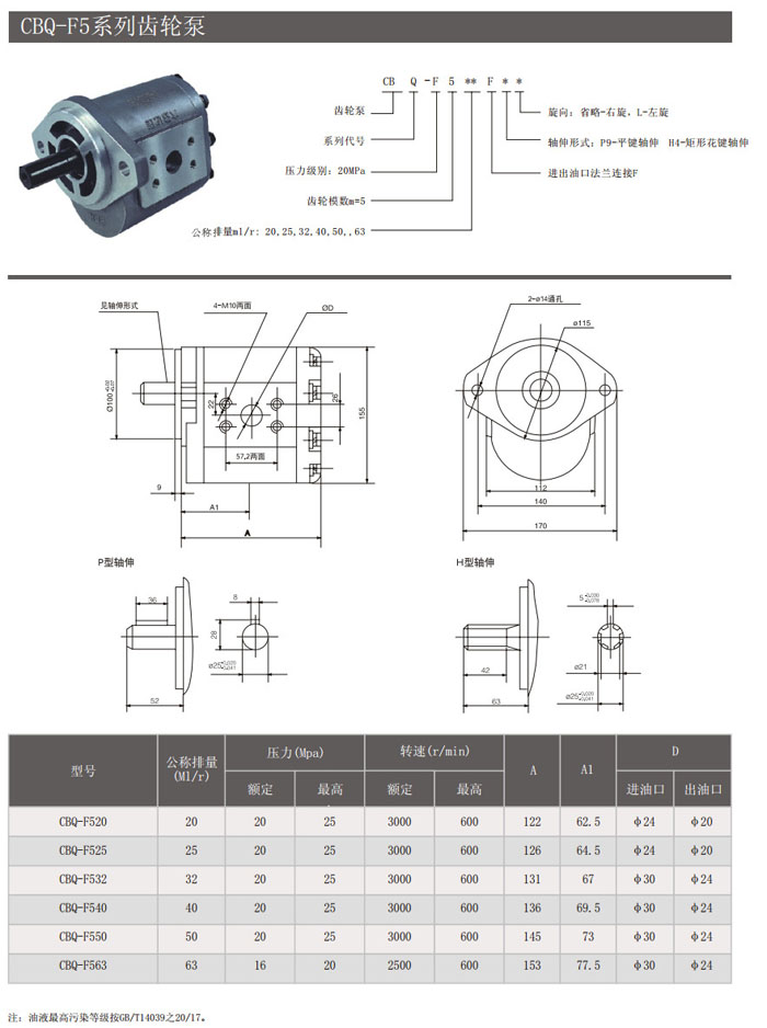 CBQ-F520,CBQ-F525,CBQ-F532,CBQ-F540,CBQ-F550,CBQ-F563,CBQ-F520FP9,CBQ-F520FP9L,齒輪泵