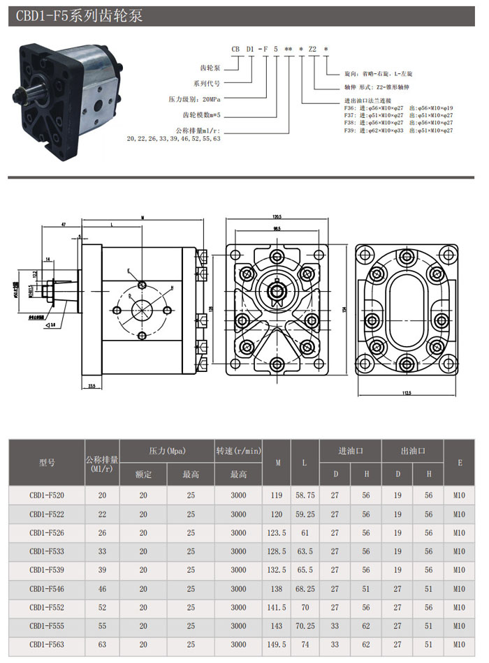 CBD1-F520,CBD1-F522,CBD1-F526,CBD1-F533,CBD1-F539,CBD1-F546,CBD1-F552,CBD1-F555,CBD1-F563,齒輪泵