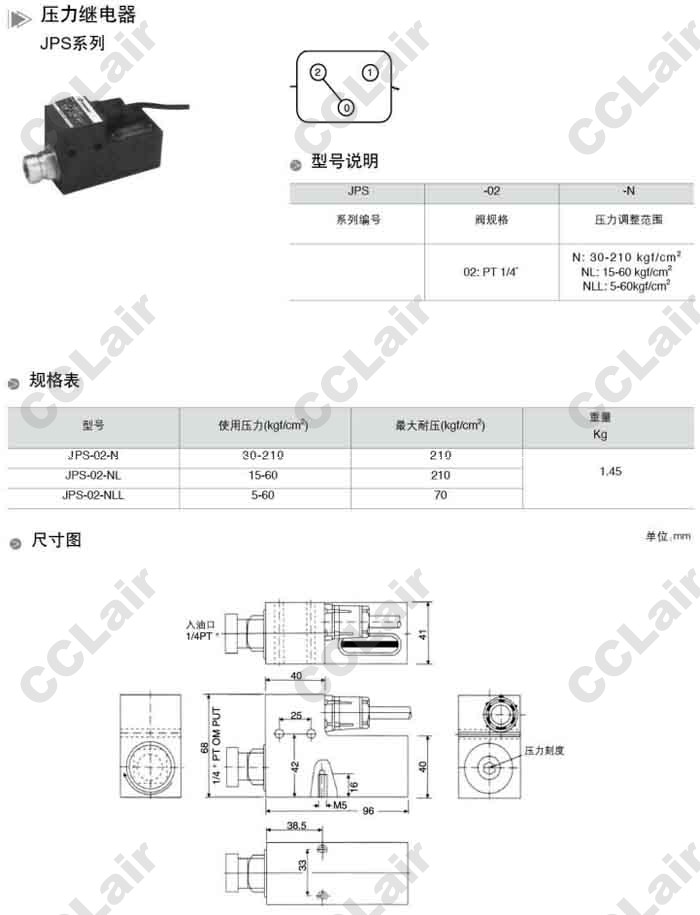 JPS-02-N,JPS-02-NL,JPS-02-NLL,壓力繼電器