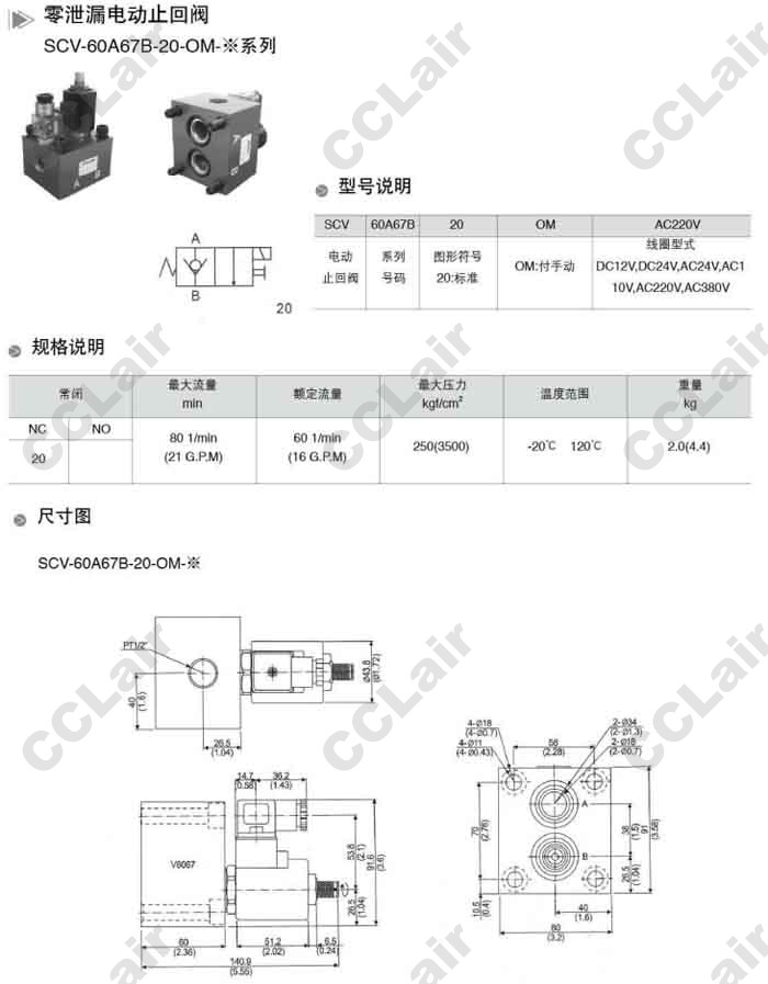 SCV-60A67B-20-OM-AC110V,SCV-60A67B-20-OM-AC220V,SCV-60A67B-20-OM-AC380V,