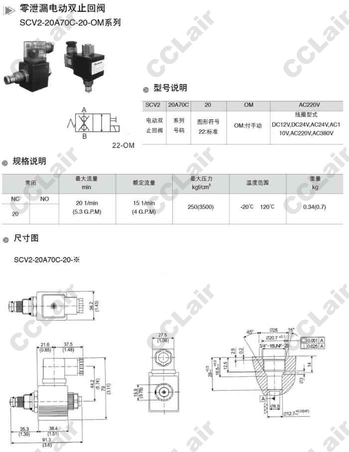 詳細(xì)信息 SCV2-20A70C-20-OM-DC12V,SCV2-20A70C-20-OM-DC24V,SCV2-20A70C-20-OM-AC24V,零泄漏電動止回閥