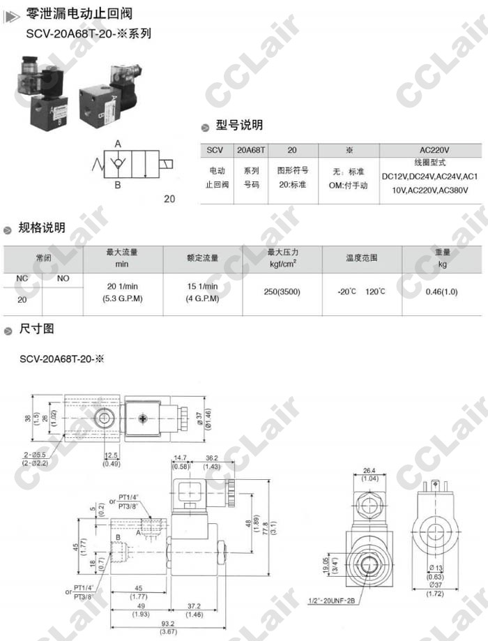 SCV-20A68T-20-AC110V,SCV-20A68T-20-AC220V,SCV-20A68T-20-AC380V,