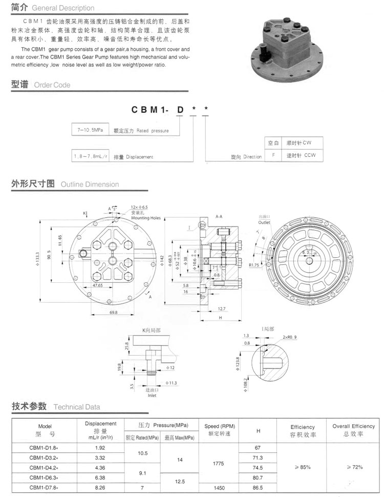 CBM1-D1.8,CBM1-D3.2,CBM1-D4.2,CBM1-D6.3,CBM1-D7.8,CBM1-D1.8F,CBM1-D3.2F,齒輪泵