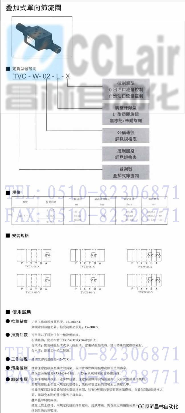 TVCA-02,TVCA-03,TVCA-06,TVCB-02,TVCB-03,疊加式單向節(jié)流閥