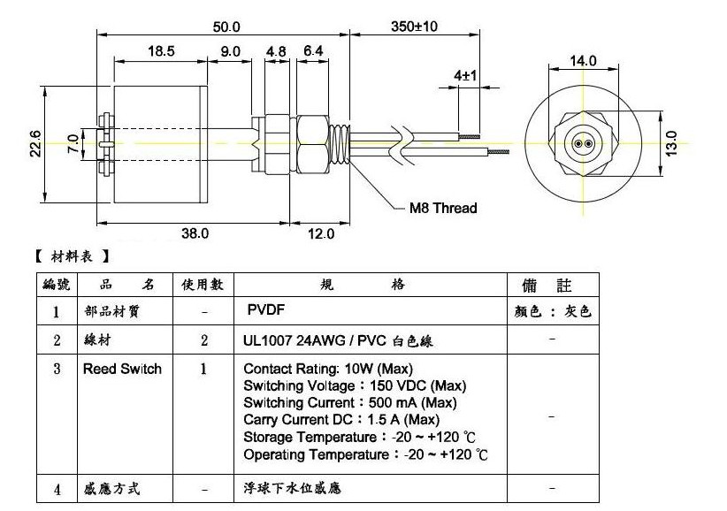 詳細(xì)信息 XFL-PVDF38I,進(jìn)口PVDF頂裝式浮球開關(guān)