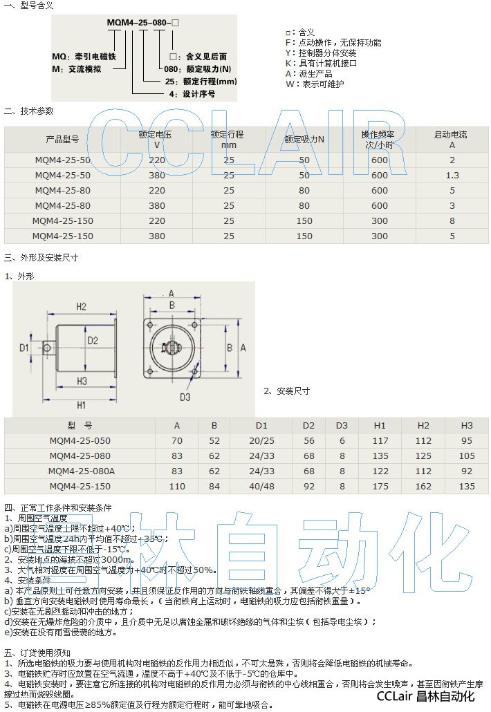 MQM4-25-50-F,MQM4-25-80-F,MQM4-25-150-F,MQM4-25-050-F,MQM4-25-080-Y,牽引電磁鐵