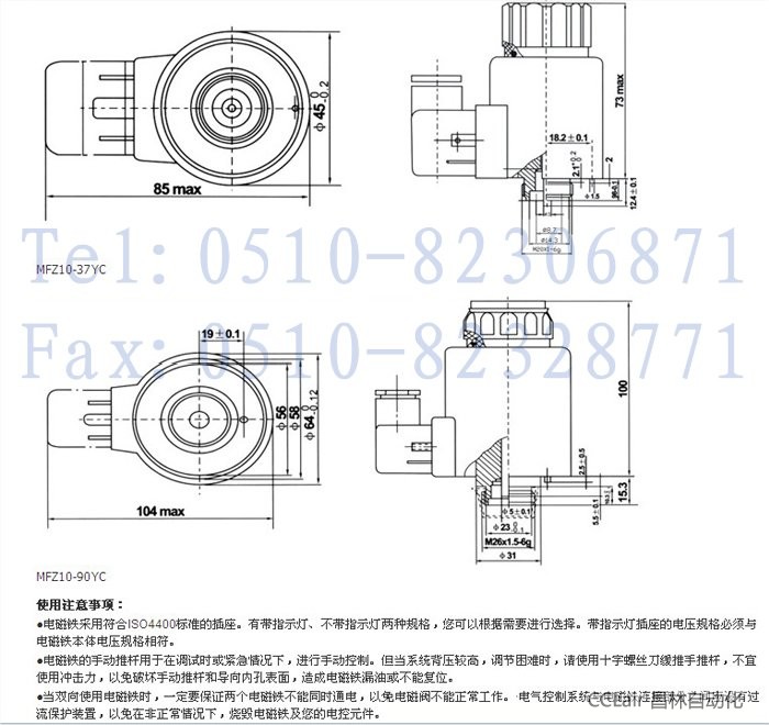 MFZ10-20YC,MFZ10-22YC,MFZ10-25YC,直流濕式閥用電磁鐵 MFZ10-37YP,MFZ10-90YP,插針型電磁鐵