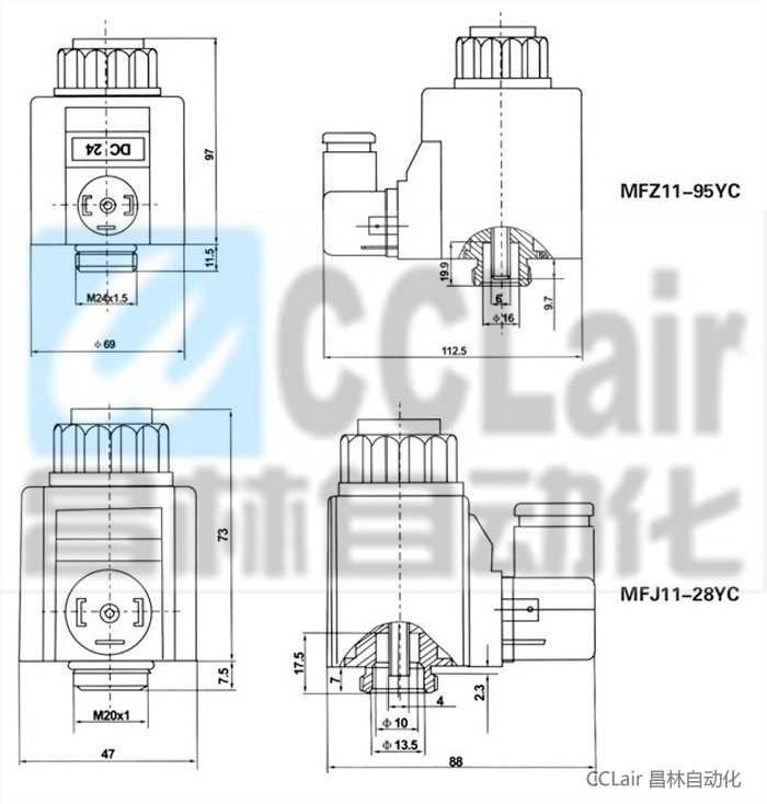 MFZ11-40YC,MFZ11-95YC,直流濕式閥用電磁鐵 MFZ11-40YP,MFZ11-28YP,MFZ11-52YP,MFZ11-95YP,插針型電磁鐵