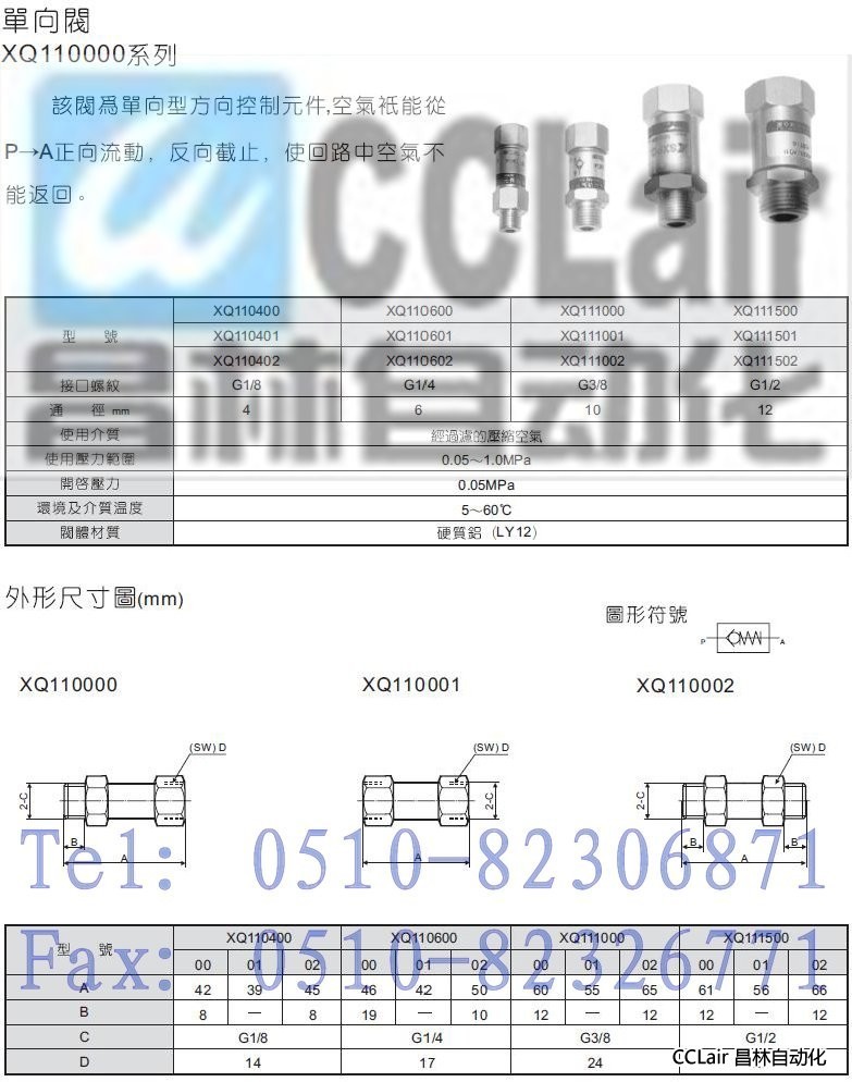 XQ110400,XQ110600,XQ111000,XQ111500,XQ110401,XQ110601,單向閥