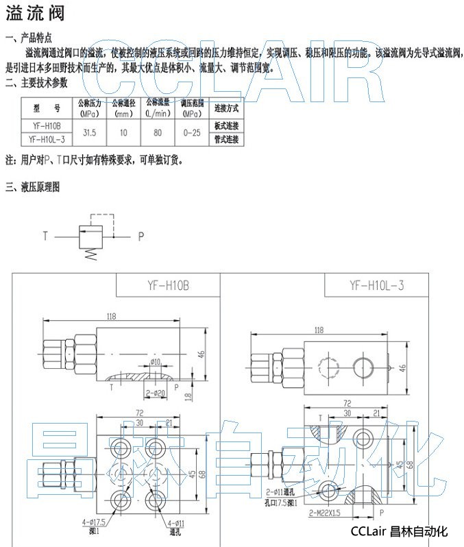 型號: YF-H10B,YF-H10L-3,溢流閥