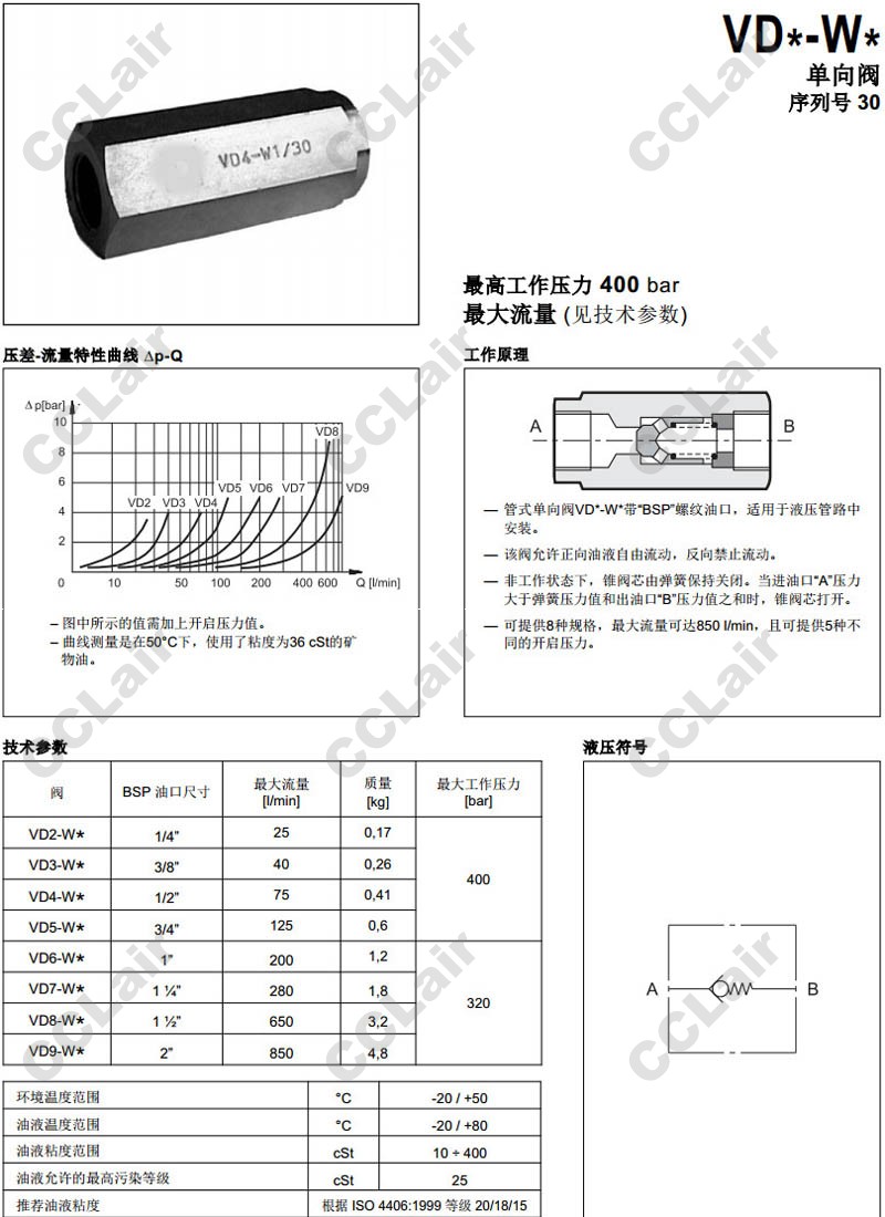 VD2-W1/30,VD3-W2/30,VD4-W3/30,VD5-W4/30,VD6-WT4/30,VD5-W1/30,VD7-W3/30,VD8-W4/30,VD9-WT4/30,VD9-W2/30,單向閥