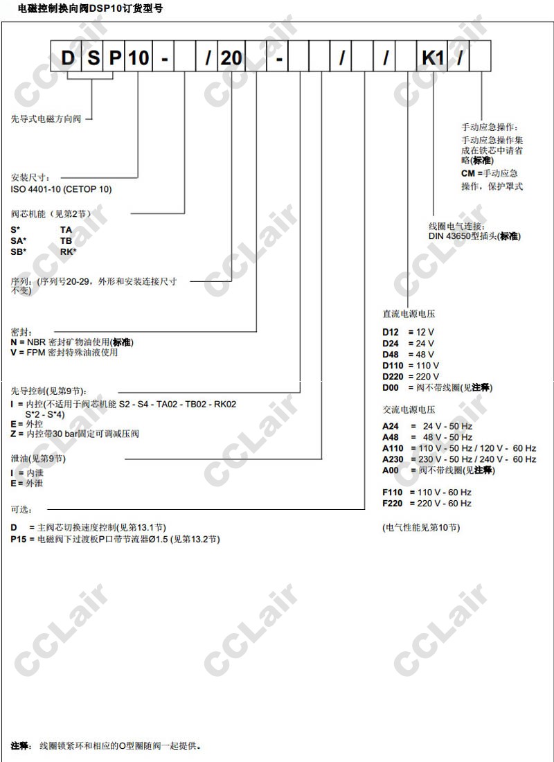 DSP10-S1/20N-II/D/D12K1/CM,DSP10-SB2/20V-ZI/D/D12K1/CM,DSP10-RK/20N-ZI/P15/D12K1/CM,DSP10-S4/20V-EI/P15/D110K1/CM,先導式電磁方向閥