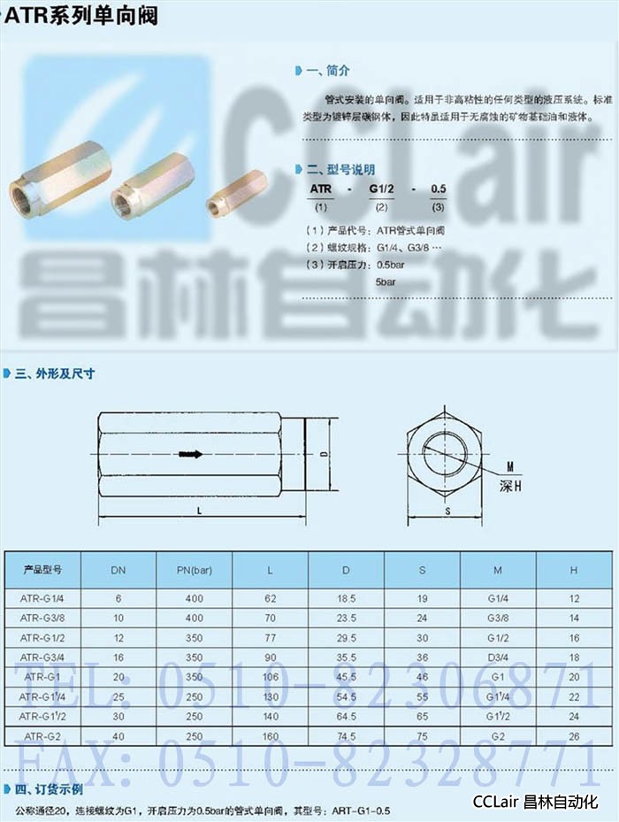 詳細信息 ATR-G1/4,ATR-G3/8,ATR-G1/2,ATR-G3/4,ATR-G1,ATR-G2,單向閥