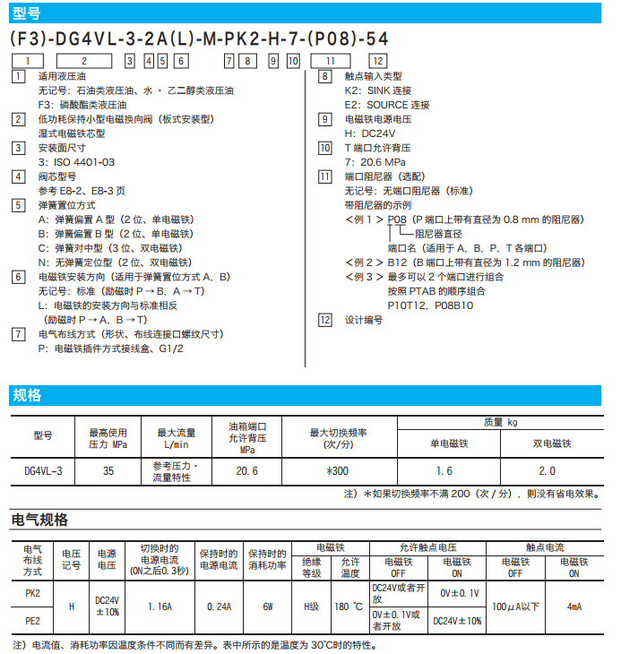 DG4VL-3-0C-M-PK2-H-7-54,DG4VL-3-0C-M-PE2-H-7-54,DG4VL-3低功耗保持小型電磁換向閥