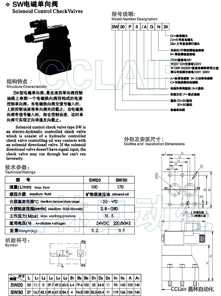 詳細(xì)信息 SW30P5/AW220RNZ5L,SW20P5/AW220RZ4,SW20P5/AW220RZ5,電磁單向閥