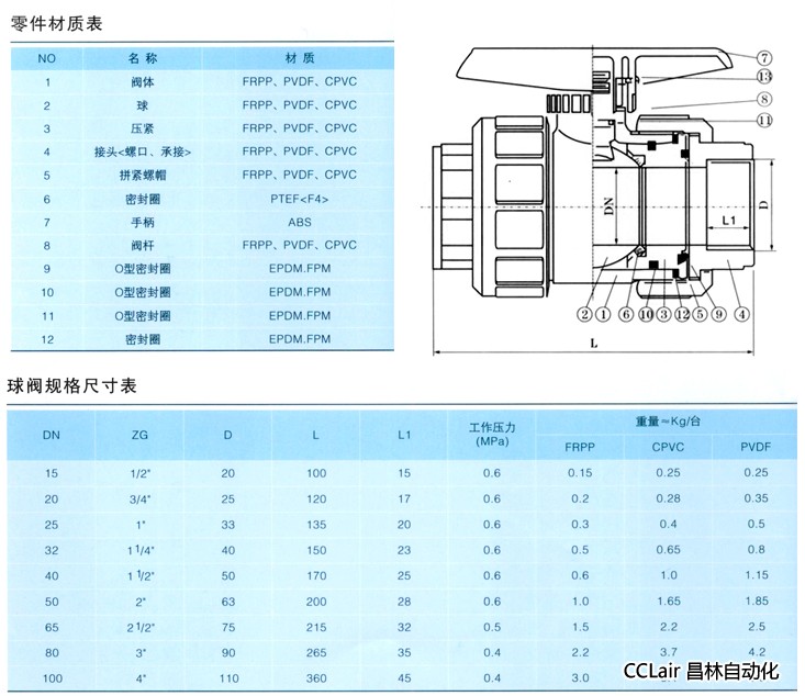 UPVC 硬聚氯乙烯 溫度-10 °C~70 °C