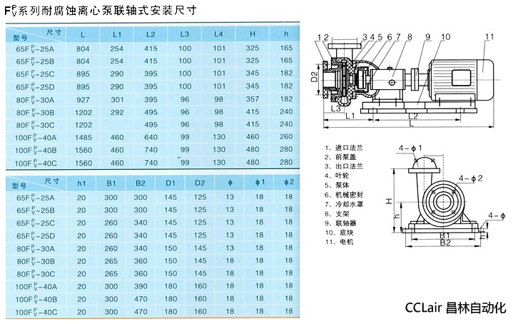 詳細(xì)信息 80FV-30C,100FV-40A,100FV-40B,100FV-40C,80FV-30B,耐腐蝕離心泵(軸聯(lián)式),