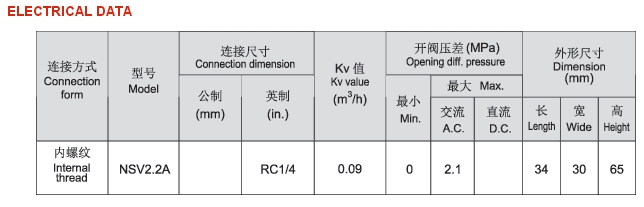 NSV2.2A型直動式電磁閥動作迅速,對電訊號響應(yīng)極快,在真空、負壓或零壓時都能正常工作,廣泛應(yīng)用于制冷、氣動、供水、蒸氣和液