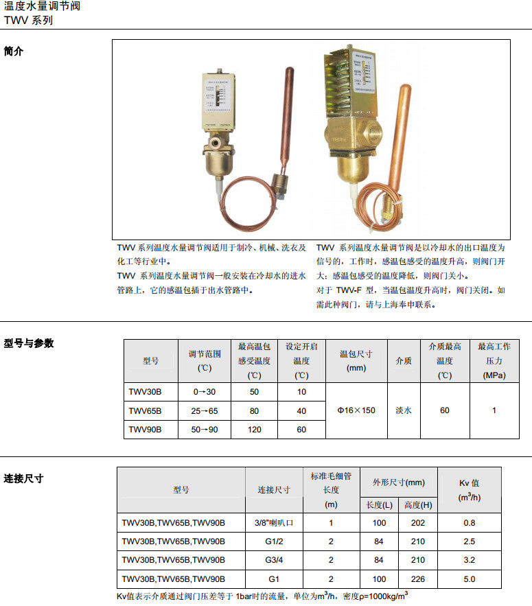 詳細(xì)信息 TWV30B,TWV65B,TWV90B,溫度水量調(diào)節(jié)閥