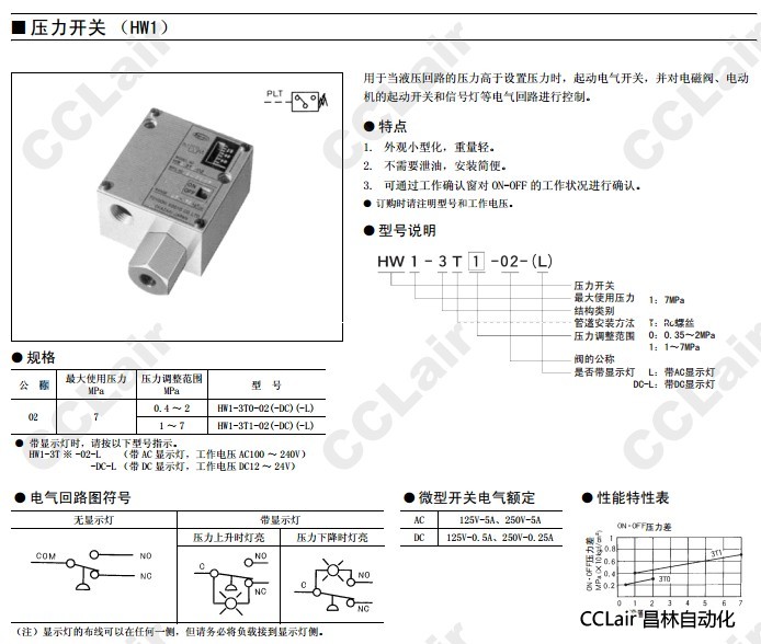 詳細(xì)信息 HW1-3T0-02-DC-L,HW1-3T1-02-DC-L,壓力開關(guān)