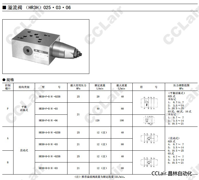 HR3H-P,HR3H-A,HR3H-B,HR3H-P-B2-03,HR3H-P-B3-03,HR3H-P-B1-06,HR3H-P-B2-06,溢流閥