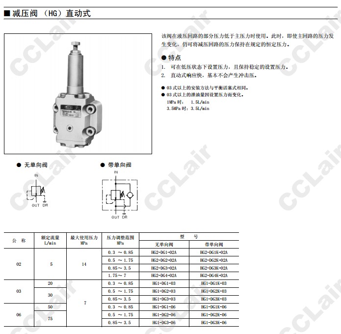詳細(xì)信息 HG2-DG,HG1-DG,HG2-DG3-02A,HG2-DG4-02A,HG1-DG3-06,HG1-DG1K-06,直動式減壓閥