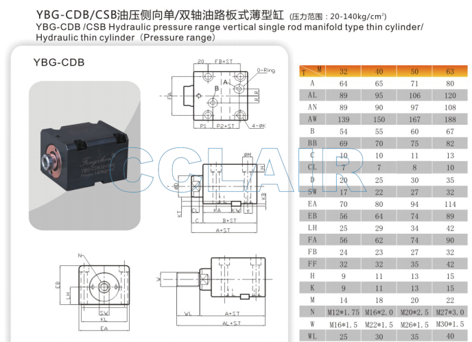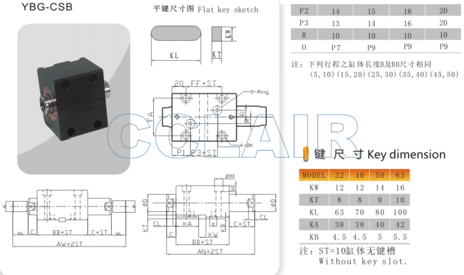 YBG-CDB32,YBG-CDB40,YBG-CSB50,YBG-CSB63,板式薄型缸