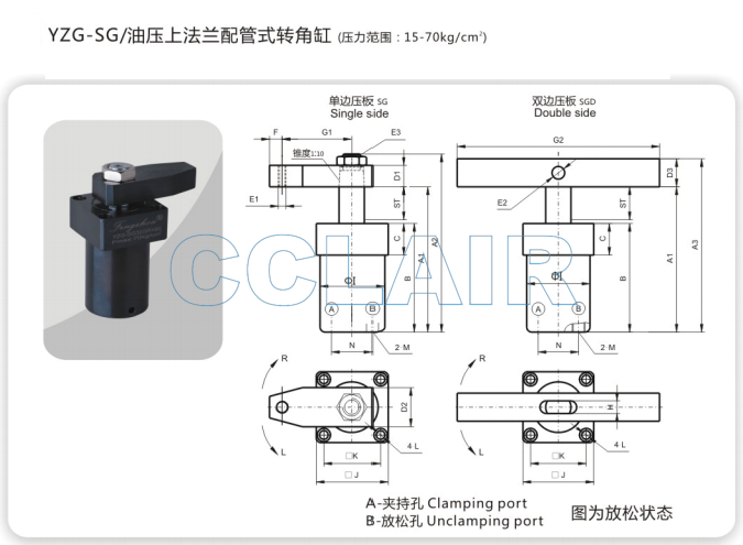 YGG-SG25,YGG-SG32,YGG-SG40,YGG-SG50,YGG-SG63,油壓上法蘭管式杠桿缸